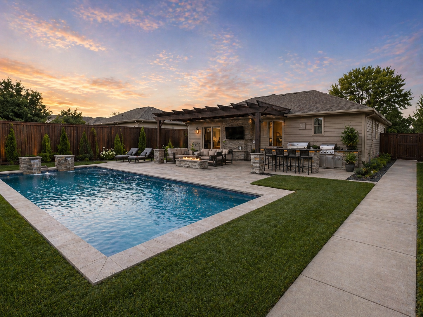 We specialize in full outdoor transformations—from pools and patios to outdoor kitchens, pergolas, and complete landscape design. Whether it’s a simple upgrade or a full-scale backyard renovation, our goal is always the same: to bring your vision to life with precision, creativity, and care.